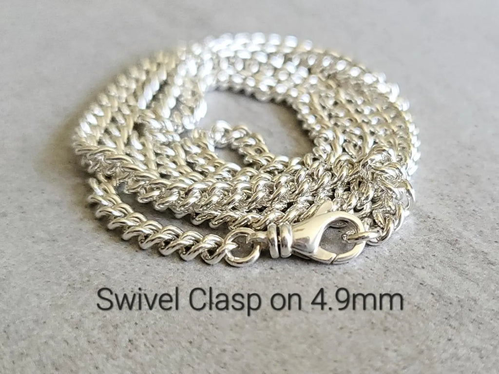 My medium to large curb chain is a nice thick 4.9mm. The rounded curb links are oxidized and hand polished giving a nice contrast.Â